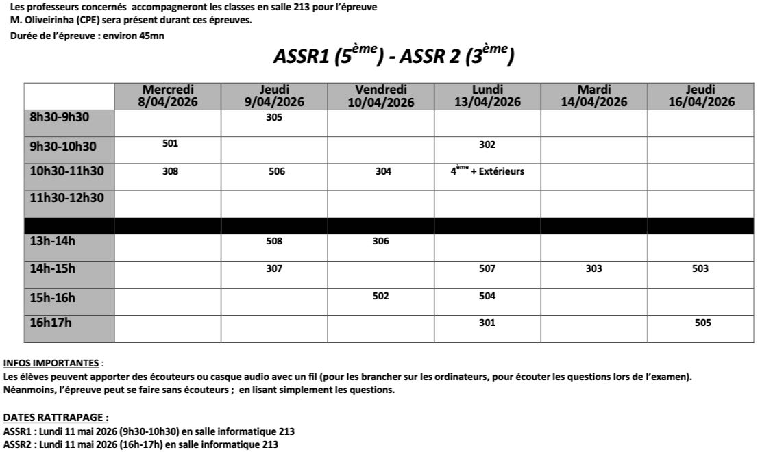 Liens pour s'entrainer et passer les épreuves ASSR1 et ASSR2 du 8 au 16 avril 2026