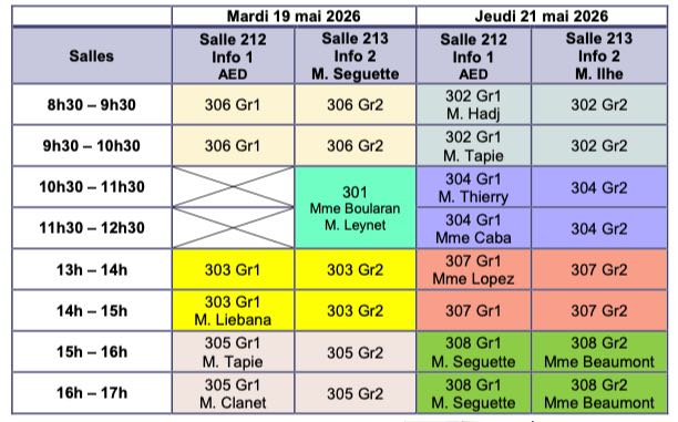 PLANNING DES ÉPREUVES