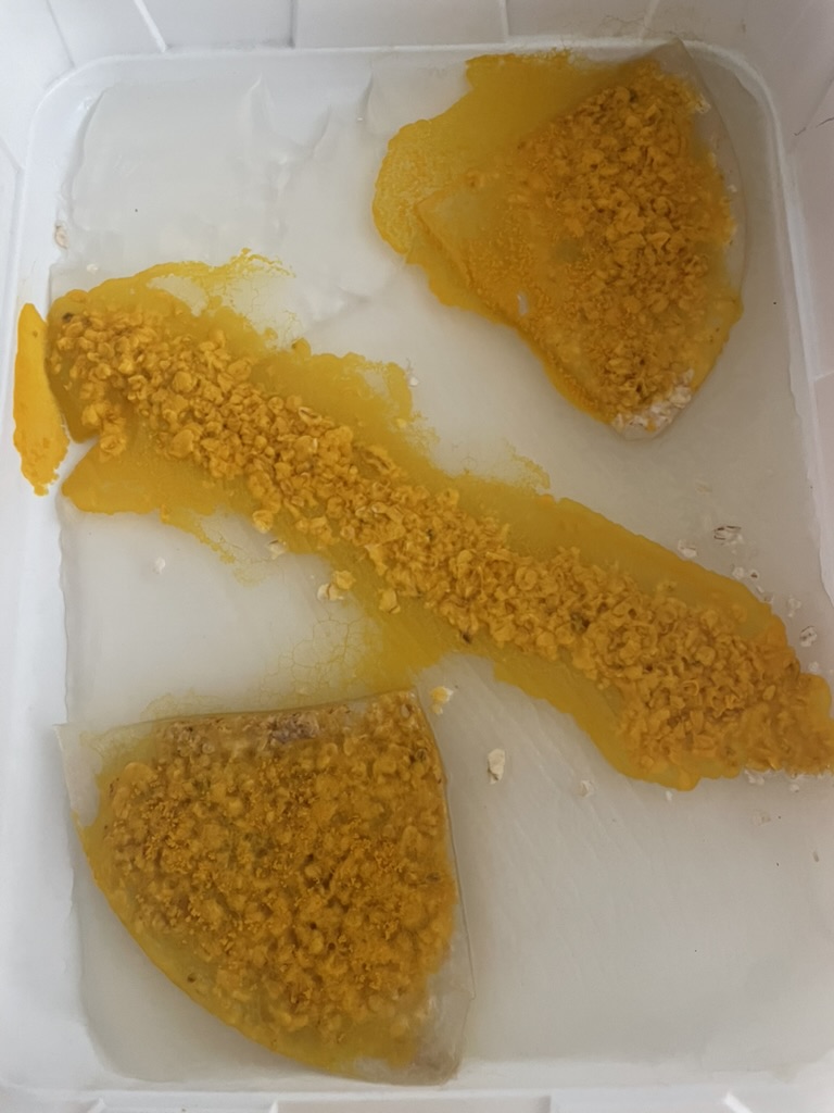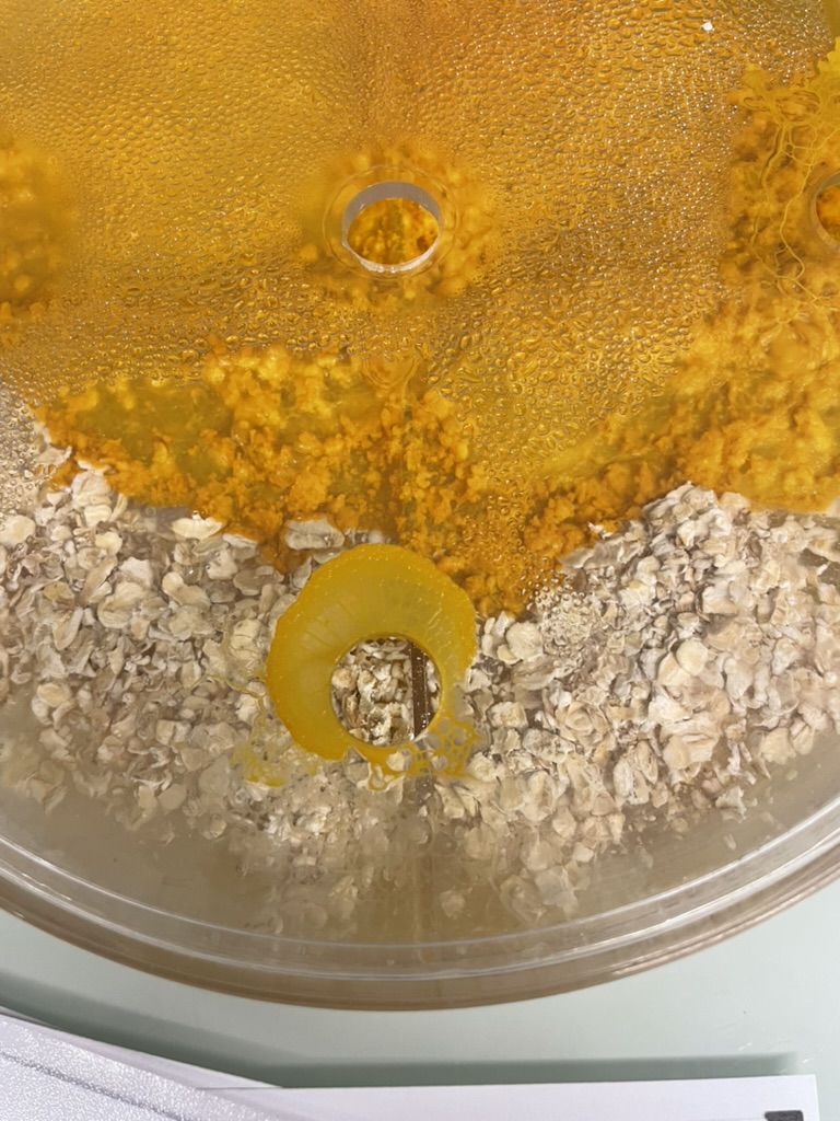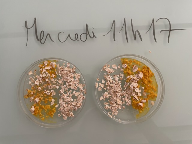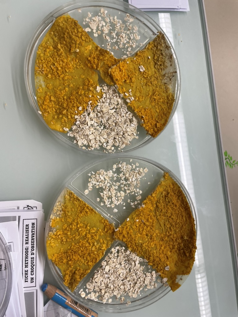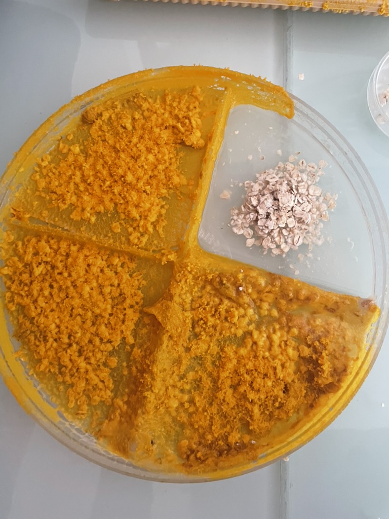 Premier jour.... et déjà premiers flocons d'avoine dévorés.....