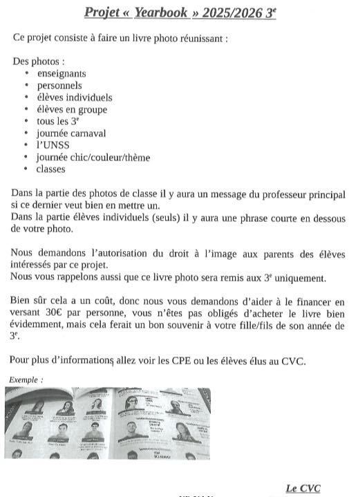 year book" pour les élèves de 3ème. Il s'agit d'un condensé de souvenirs de leur dernière année au Collège.
